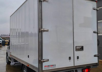 Igény esetén a zárt alumínium doboz emelőhátfallal is felszerelhető. Kívánságra az alumínium doboz felépítmény utólagosan hőszigetelhető, illetve hűtőberendezéssel ellátva 0+5°C-os hűtődobozzá alakítható át.